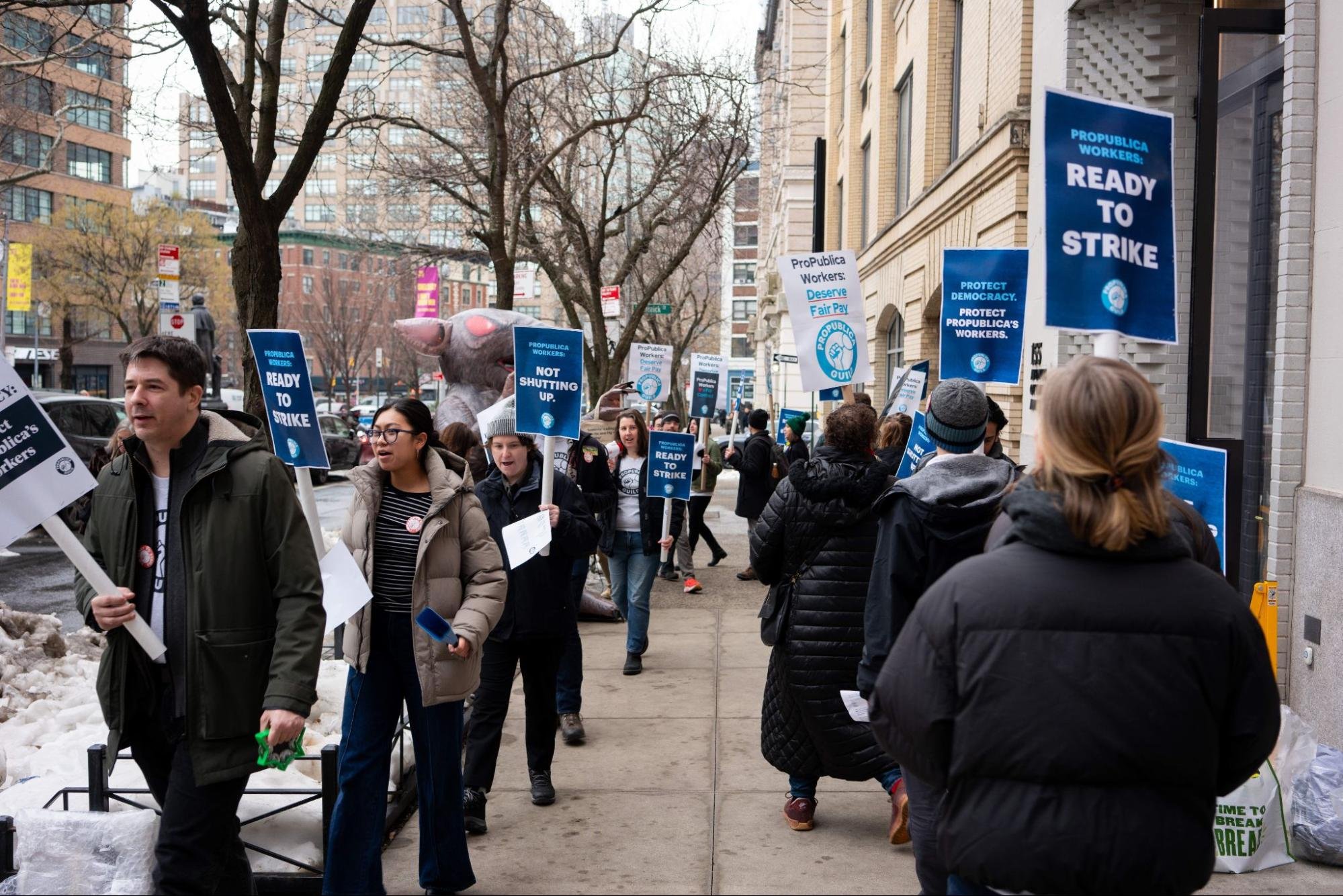 Last week, our members walked out of ProPublica offices across the country to show our management that we are ready to strike if necessary in our fight for a fair contract. We practiced walking picket lines in New York City, Washington, D.C., Austin and Chicago — in addition to dozens of workers joining virtually.